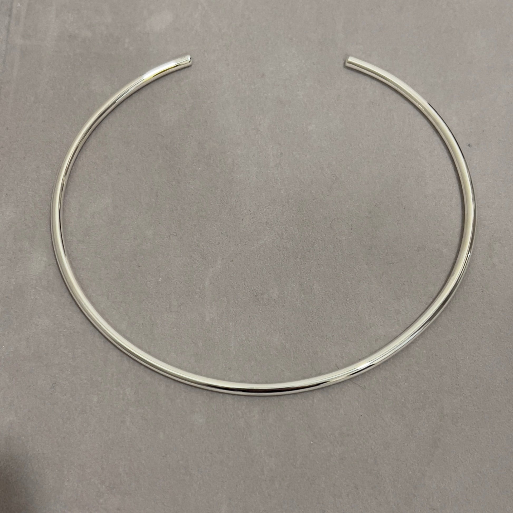 Designed as a study in shape and restraint, this slender, open-ended collar is the epitome of quiet luxury. Formed by hand from solid 925 sterling silver, its polished tubular silhouette curves with architectural precision—minimalist yet statement-making.